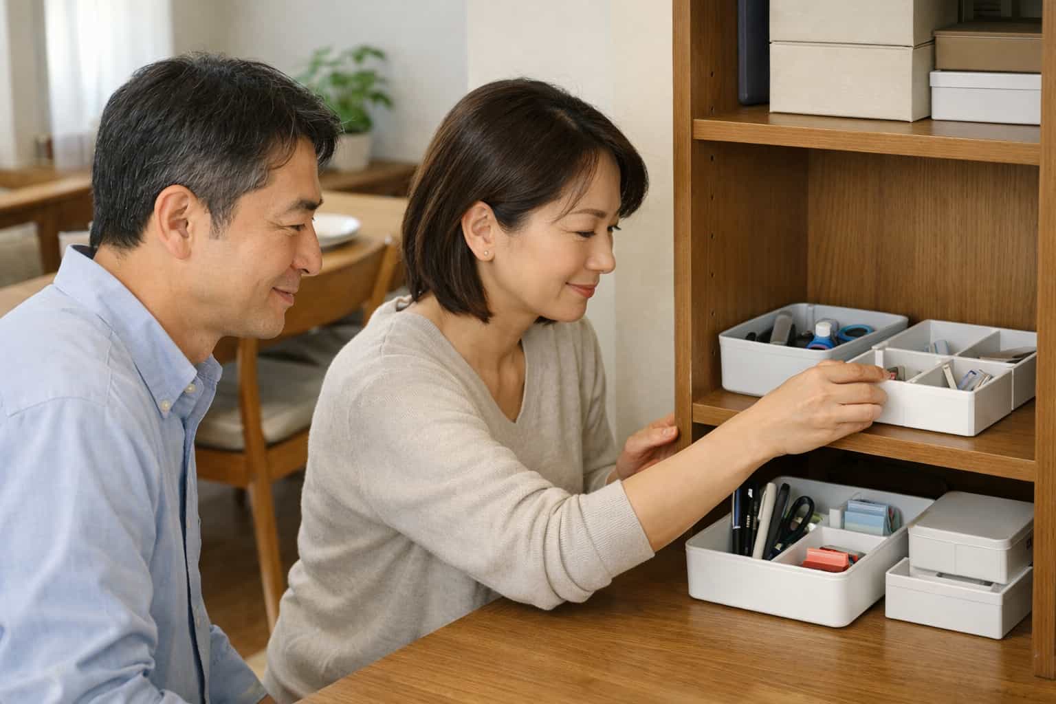 後からでも小さな文具コーナーを作れると分かるだけで、収納の見直しはぐっと進めやすくなります。