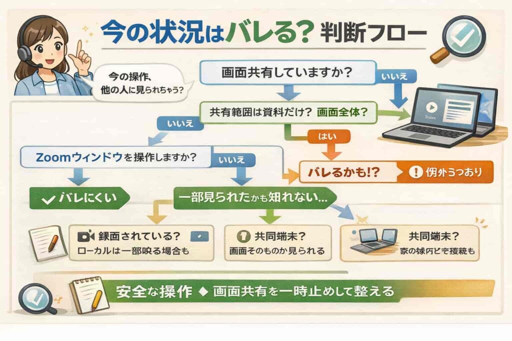 この図解パートでは、今の状態が「バレにくい」か「見えてしまう」かを短い流れで判断できるようにします。