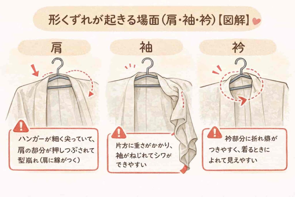 形くずれが起きる場面(肩・袖・衿)【図解】