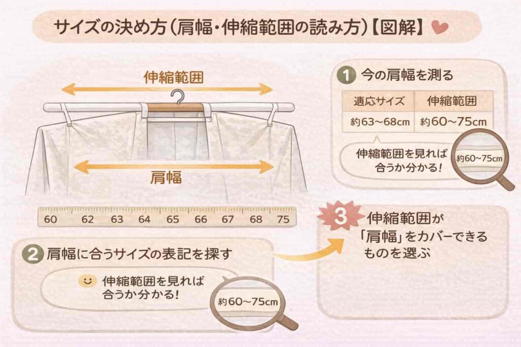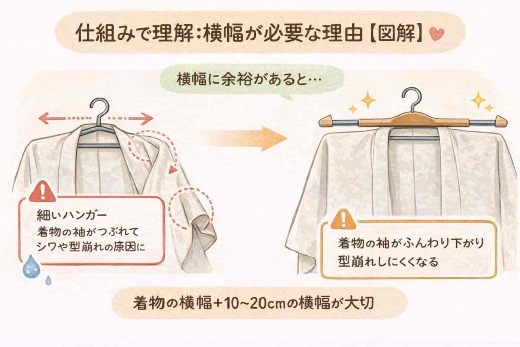 横幅は広いほど良いと思いがちですが、着物が楽に乗っているかを優先すると失敗しにくいです。